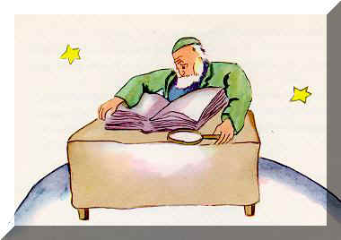 El sexto planeta era diez veces más grande. Estaba habitado por un anciano que escribía grandes libros.